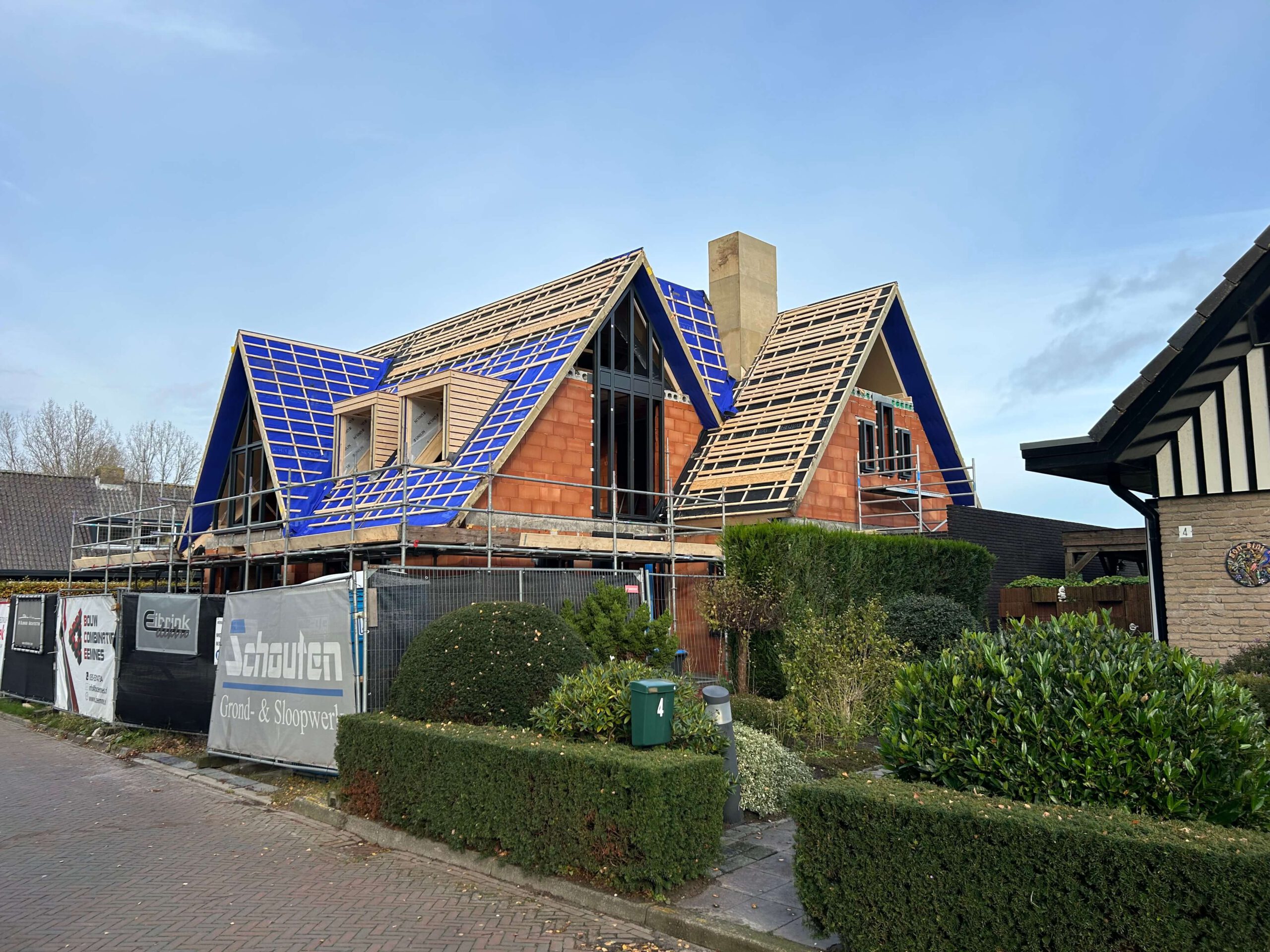 Bouw in Spakenburg loopt voorspoedig, deze week is de prefab kapconstructie geplaatst